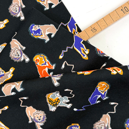 Reststück! 0,60m Designerleftover Rippenjersey Baumwolle, Electric Lion