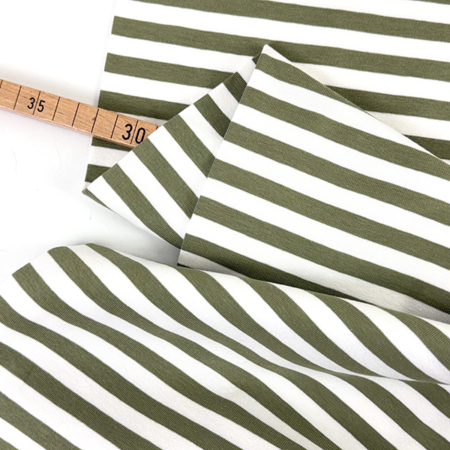 Reststück!!! 1,05m Cotton Jersey Yarn Dyed Streifen, Oliv Weiß