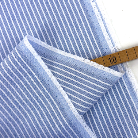 Oxford Cotton Yarn Dyed Stripes, Jeansblau Weiß