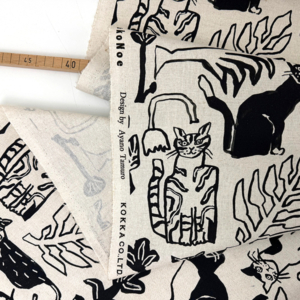NekoNoe „Botanical Cats“, Kokka Echino, BW Leinen Canvas Schwarz