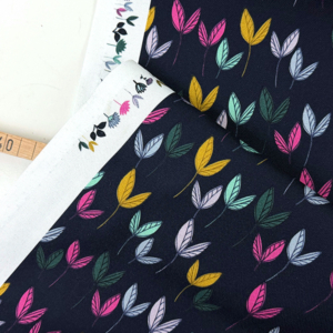 Dancing Leaves by Emjo Design, Navy Colors, Baumwolle