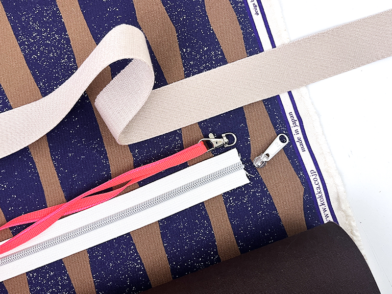 Auch dabei: eine neonfarbene Paspel für den Schlüsselkarabiner und ein Stück uni BW für die RV-Innentasche.