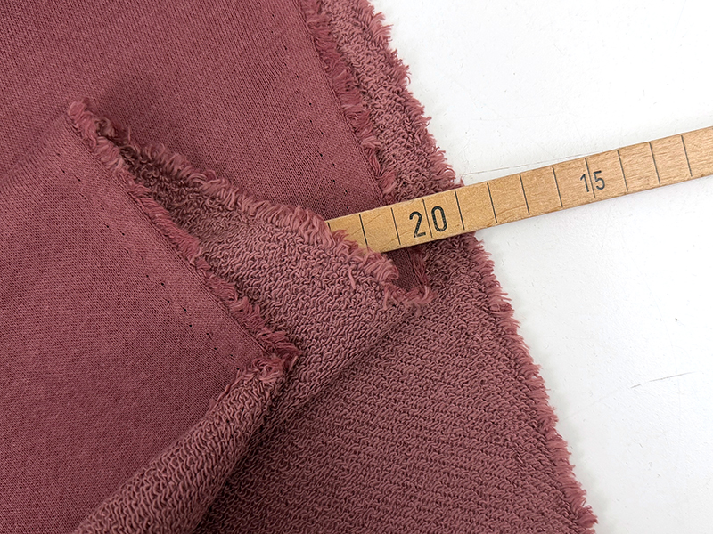 Der Terry enthält kein Elastan, ist jedoch dennoch durch den Strick dehnbar. Er ist hervorragend geeignet für Kleidung wie Sweater, Hoodies, Cardigans, Longsleeves, Kurzarmsweater, etc…