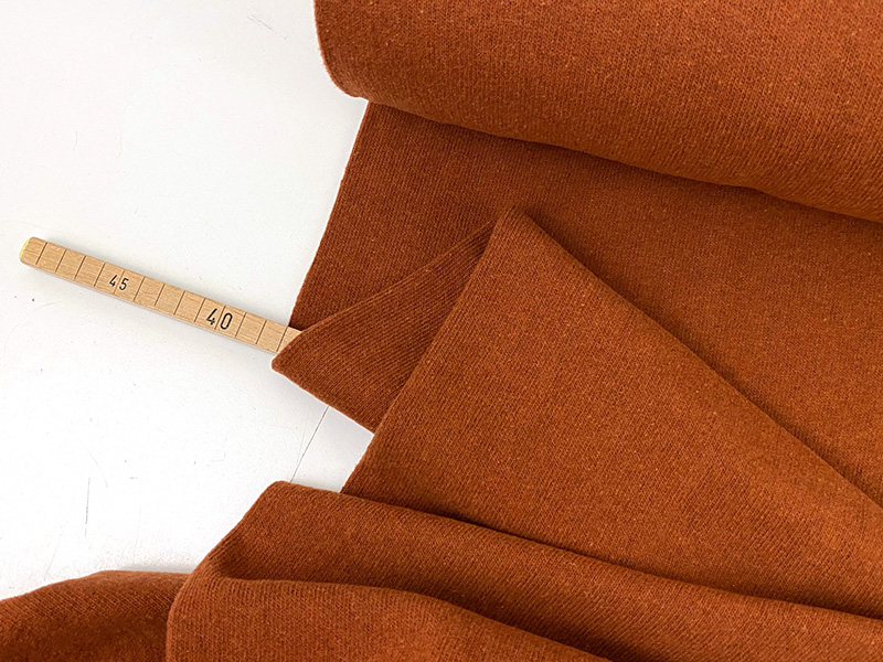 Der Stoff fällt geschmeidig und hat eine schöne Dehnbarkeit. Er eignet sich hervorragend für Bekleidung wie Sweater, Cardigans, Pullunder, Hoodies, Shirts, Kleider, Schals, etc..