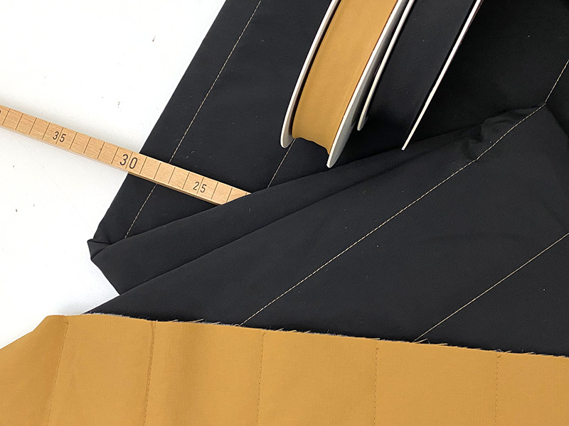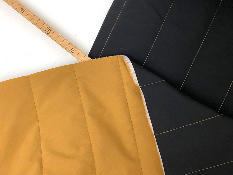 Perfekter Outdoorsteppstoff mit zwei gleichwertigen Seiten, durchgesteppten Nähten und einem matt samtigen Finish. Wasserabweisend, antistatisch, durabel, schön warm und außerdem richtig schick! Das Material ist als Doubleface konzipiert, d. h. beide Seiten sind gleichwertig einsetzbar. Die schwarze Seite ist mit Garn in Cinnamon durchgesteppt, so dass hier noch ein sehr schöner Kontrast sichtbar ist.