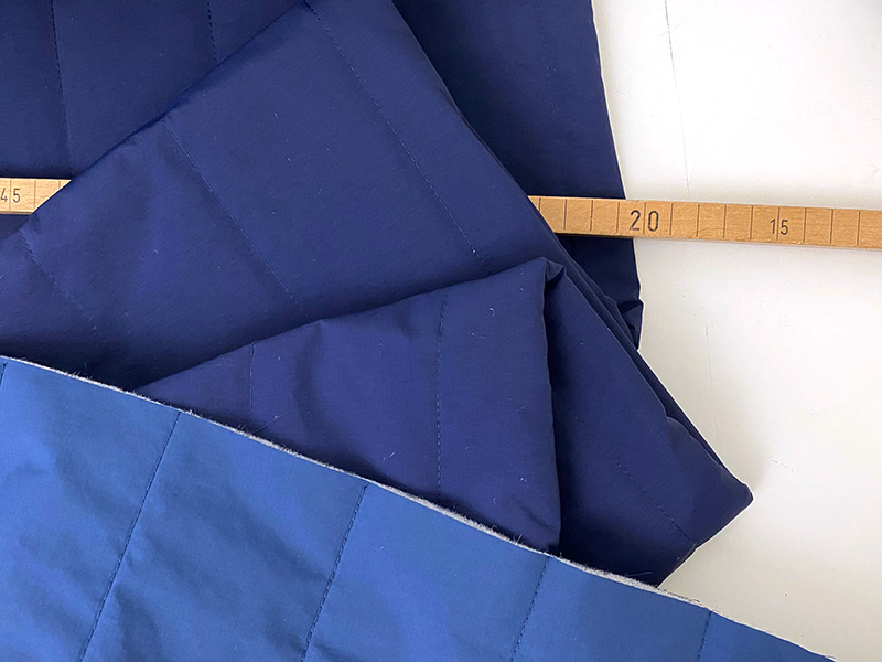 Perfekter Outdoorsteppstoff mit zwei gleichwertigen Seiten, durchgesteppten Nähten und einem matt samtigen Finish. Wasserabweisend, antistatisch, durabel, schön warm und außerdem richtig schick! Das Material ist als Doubleface konzipiert, d. h. beide Seiten sind gleichwertig einsetzbar. Die jeweiligen Seiten sind Ton in Ton mit dem Stoff abgesteppt.