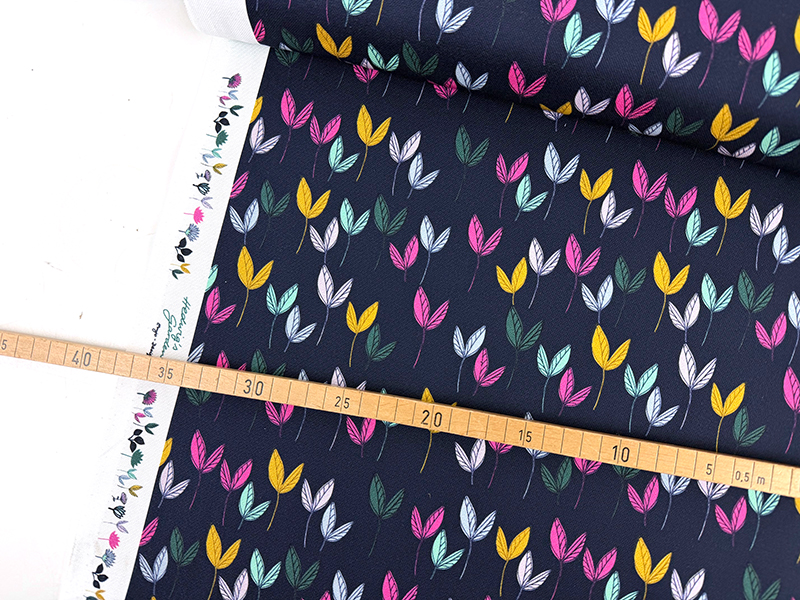 Dancing Leaves by Emjo Design, Navy Colors, Baumwolle