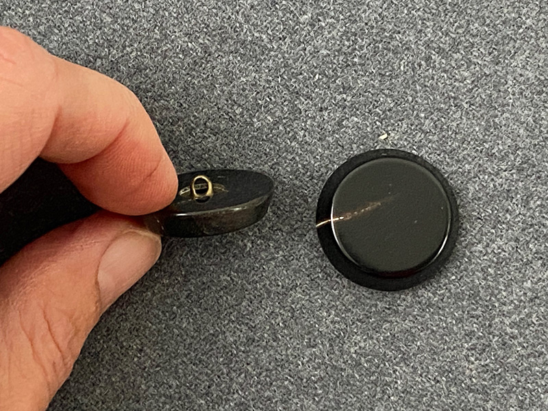 Da Horn ein Naturmaterial ist, ist tatsächlich jeder Knopf geringfügig anders. Manche Knöpfe besitzen kleine helle Anteile, manche nicht. Diese Unterschiede sind wunderschön und machen jeden Knopf zu einem Unikat.