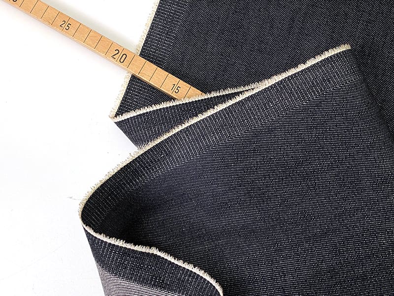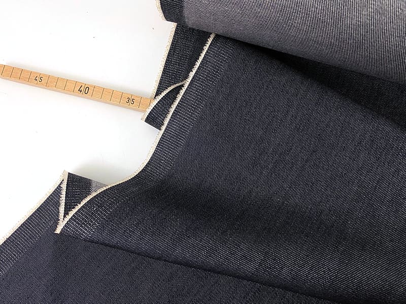 Dieser Denim ist raw, d. h., er kommt direkt vom Webstuhl und wurde nicht gewaschen oder behandelt. (*** Anmerkung: ich habe den Stoff vor der Verarbeitung erst eingeweicht und dann schonend gewaschen. Er hat trotz „raw“ kaum Farbe angegeben und keine Streifen ausgebildet – sieht nach der Wäsche genau so toll aus wie vorher)