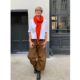Klassischer Denim, zweifarbig in nicht zu dunklem Ziegelrot und sattem Toffeebraun. Der Stoff kann beidseitig verwendet werden und hat gut Stand und Festigkeit. Der geringe Elastananteil ist für eine richtig gute Passform ideal und die Hose wirkt überhaupt nicht „stretchig“. Perfekt zu kombinieren mit Braun in allen Schattierungen, Rot in allen Schattierungen und Blau, bzw. Schwarz sowieso.