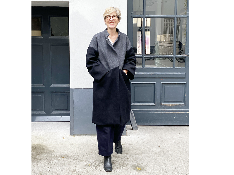 Designbeispiel von @1000stoff in dem Mantel SHALLI von Mashal Metje (@swingandsew) aus TAUKO Magazin #17.