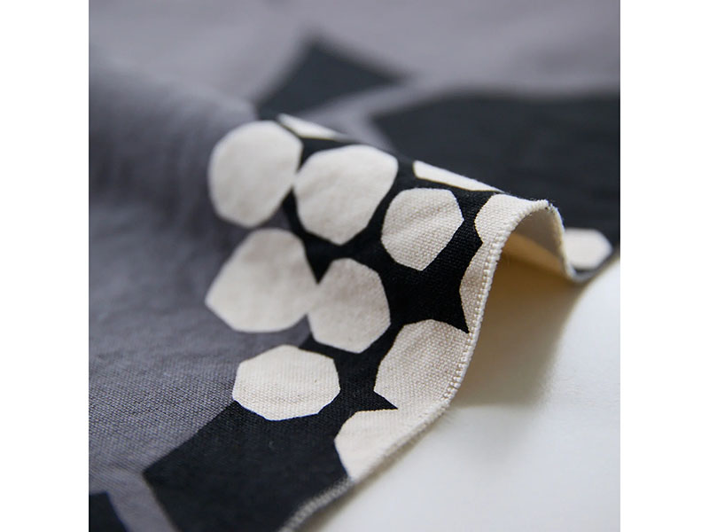 Große Blumenmotive in Grau und Off-White (ungebleichte Baumwolle) auf Schwarz – ein grafisches und lebendiges Muster in kräftiger Canvasqualität. Der Stoff ist fester als ein „normaler Canvas“ und besitzt durchaus Stand. Er lässt sich trotzdem super verarbeiten, präzise zuschneiden und gut nähen.