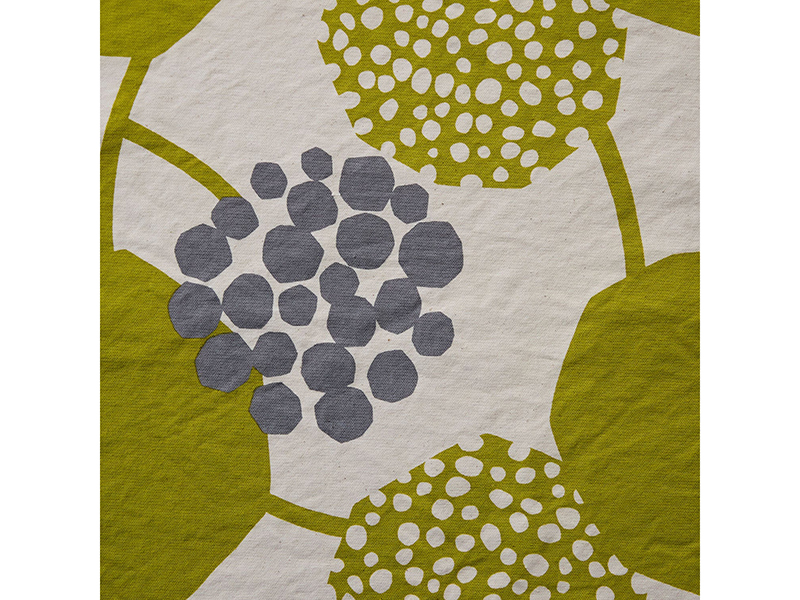 Große Blumenmotive in Lime und Grau auf Naturweiß (ungebleichte Baumwolle) – ein grafisches und lebendiges Muster in kräftiger Canvasqualität. Der Stoff ist fester als ein „normaler Canvas“ und besitzt durchaus Stand. Er lässt sich trotzdem super verarbeiten, präzise zuschneiden und gut nähen.