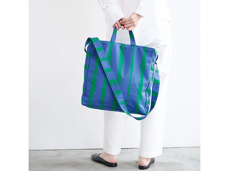 Von Hand gemalte Streifen in sattem Blau und Grün (ungebleichte Baumwolle) in kräftiger Canvasqualität. Der Stoff ist fester als ein „normaler Canvas“ und besitzt durchaus Stand. Er lässt sich trotzdem super verarbeiten, präzise zuschneiden und gut nähen.
