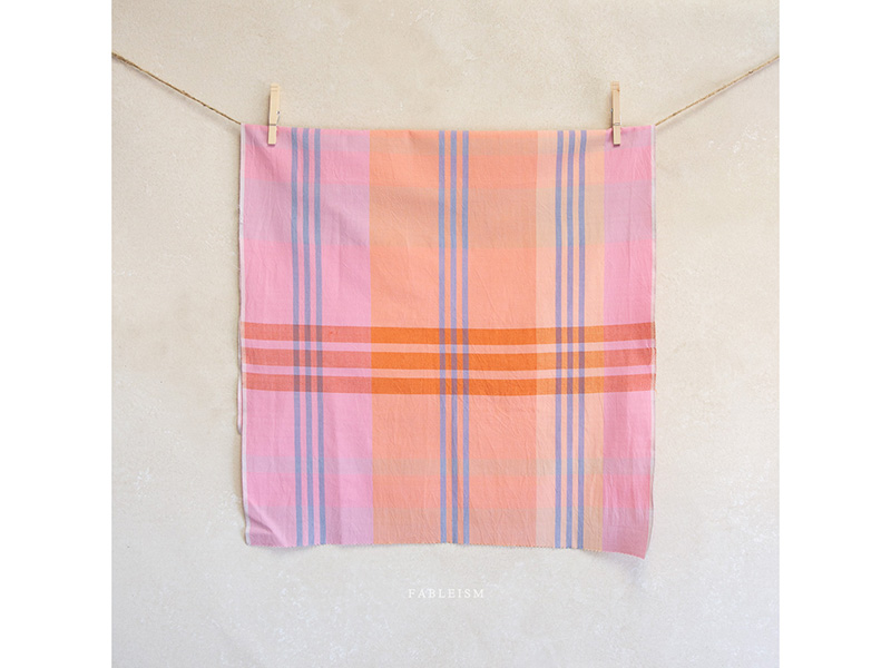 Wunderschöner Karo Baumwollstoff mit schönen Farbtönen aus Orange und Rosa mit blauen Streifen. Das Muster ist gewebt, also beidseitig sichtbar und beidseitig einsetzbar, die Karos sind ca 6×5,5cm