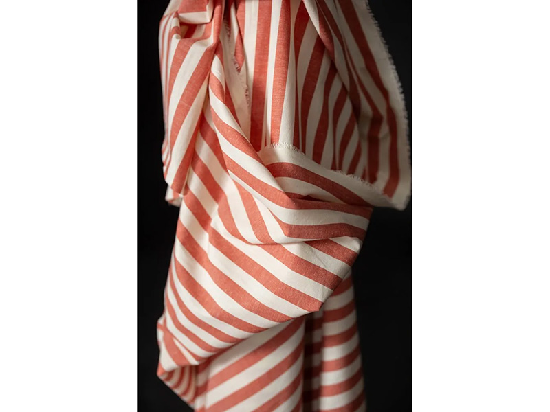 88% Baumwolle, 12% Leinen, ca. 151gr/qm, Streifenbreite 2 cm, parallel zur Webkante