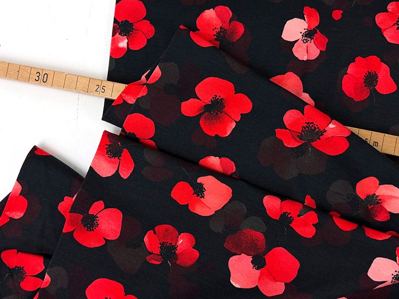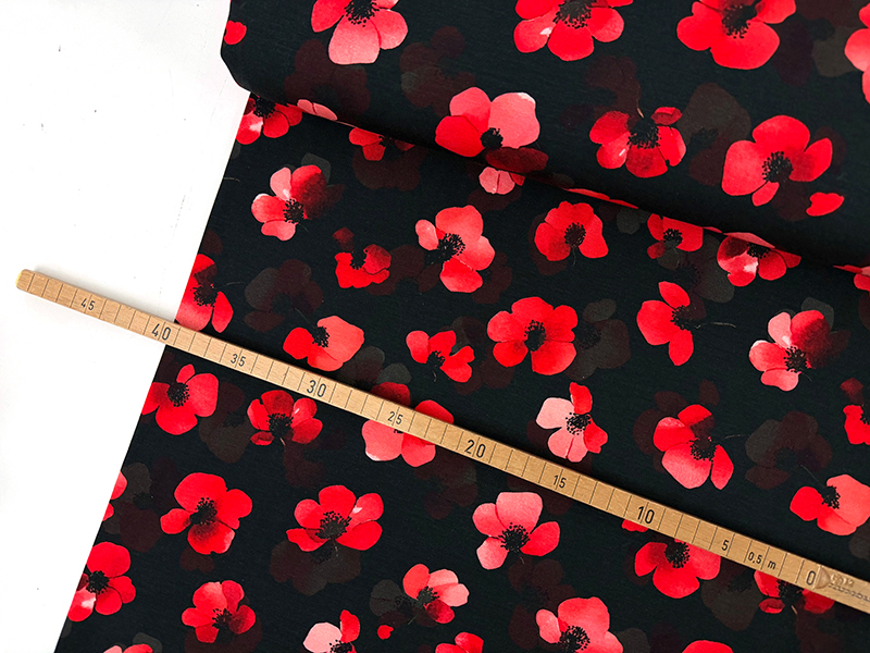 Jersey Baumwolle Modal, Mohnblumen Rot Schwarz