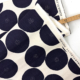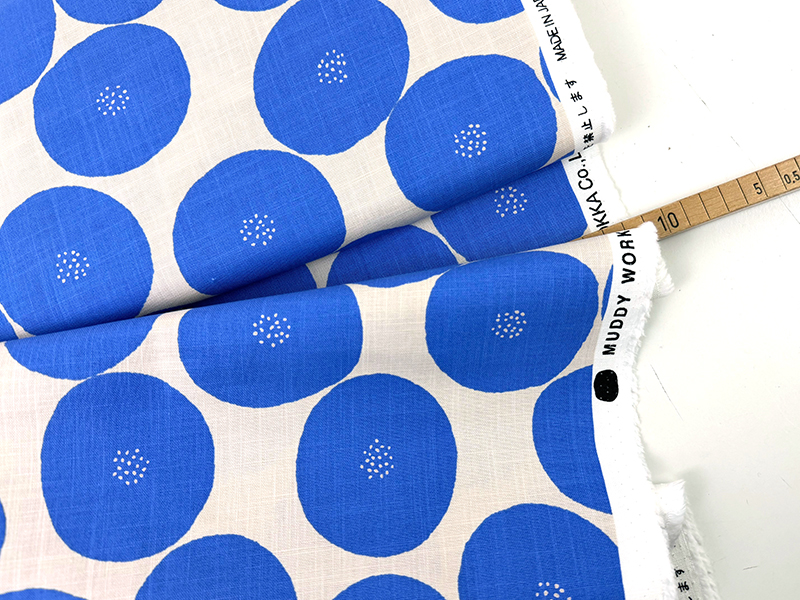 Große Dots in leuchtendem blau auf sehr hellem hellgrau – ein grafisches und trotzdem lebendiges Muster in leichter Canvasqualität. Das Material hat eine sehr schöne, leicht unregelmäßige Webstruktur und wurde im Siebdruckverfahren bedruckt, so dass die Farbe intensiv und satt auf dem Gewebe sitzt.