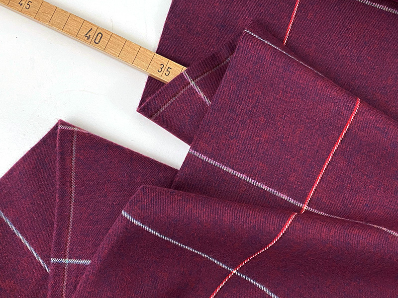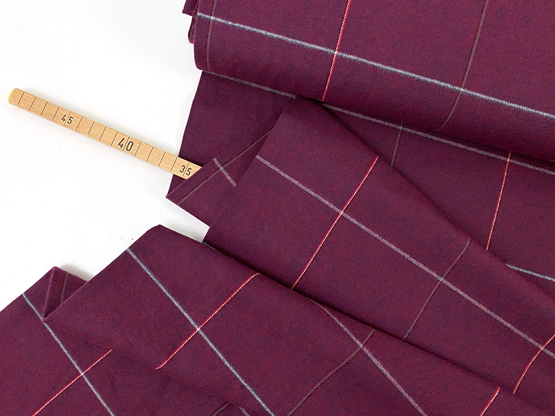 Der Stoff ist ein schön kuscheliger Baumwollflanell mit einem dezentem Karomuster in Bordeaux mit unterschiedlich farbigen Linien. Das Material hat mit 1,85 gr/qm eine sehr schöne Stärke, nicht zu dünn und nicht zu dick, perfekt für kühle Herbst- und Winterabende, Nächte und Morgende.