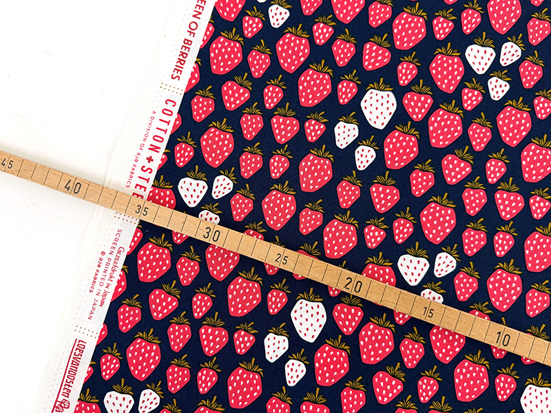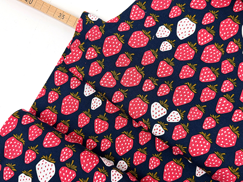 • 0,85m BW Stoff „Strawberries Navy“, Under the Apple Tree von Cotton and Steel