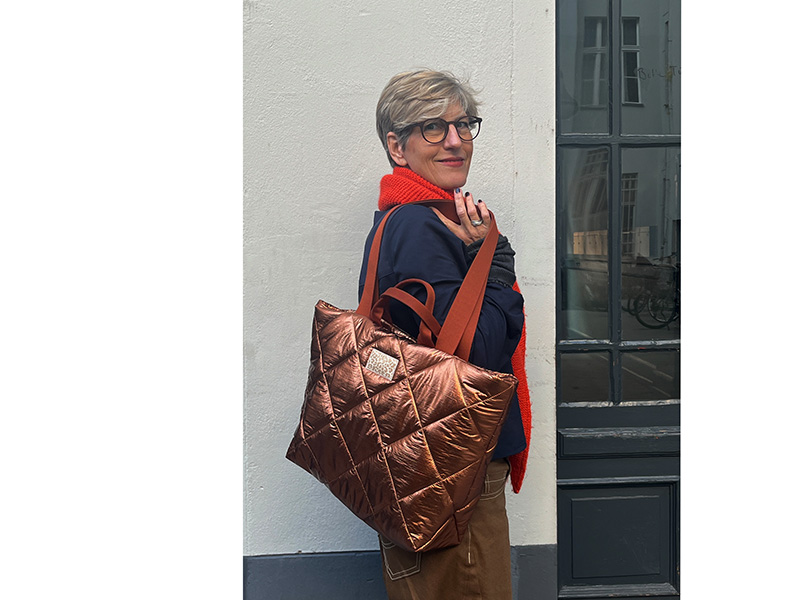 Wenn du die Tasche lieber mit kupfernen Tragegriffen nähen möchtest, findest du dazu ebenfalls eine ausführliche Beschreibung in der Papieranleitung. Der Steppstoff reicht auch für kupferne Henkel.