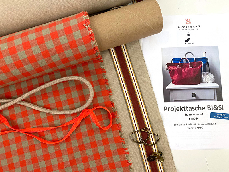 Dieses Nähpaket enthält alle Materialien und die Hardware, die Ihr für eine große Projekttasche (und somit natürlich auch alternativ für eine kleine) benötigt.