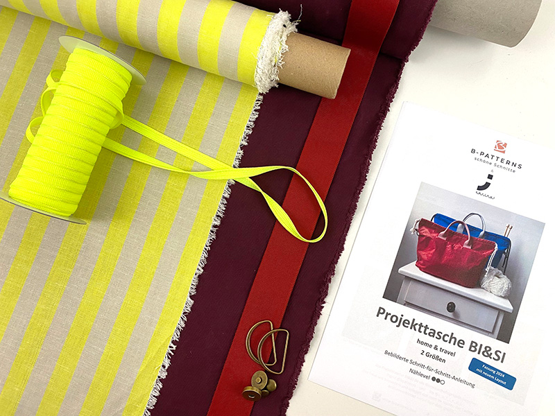 Das Gurtband und Futter der abgebildeten, fertigen Tasche entspricht nicht den Artikeln aus diesem Nähpaket…. Ich habe leider nicht in jeder Kombination fertig genähte Taschen hier….