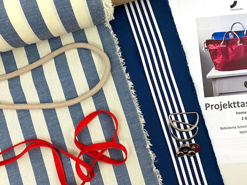 Dieses Nähpaket enthält alle Materialien und die Hardware, die Ihr für eine große Projekttasche (und somit natürlich auch alternativ für eine kleine) benötigt.