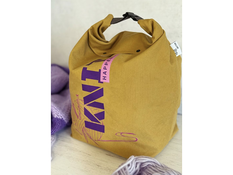 Die Projekttasche Homebase ist perfekt für alle, die Strickzeug stilvoll und sicher aufbewahren möchten.