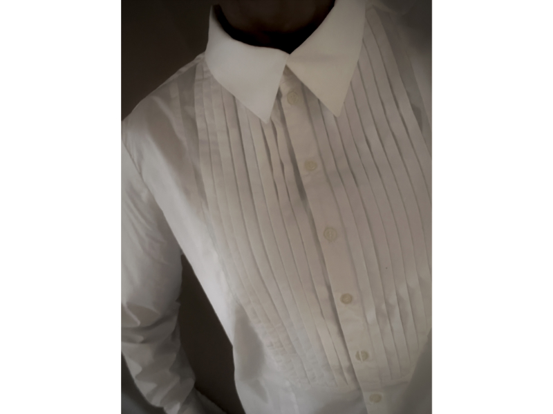 Es handelt sich um eine hochwertige Blusenqualität mit sehr schönem Fall bei gleichzeitig etwas Stand – eindeutig ein professioneller Stoff, den man trotz seiner Schlichtheit leider nicht so oft findet.