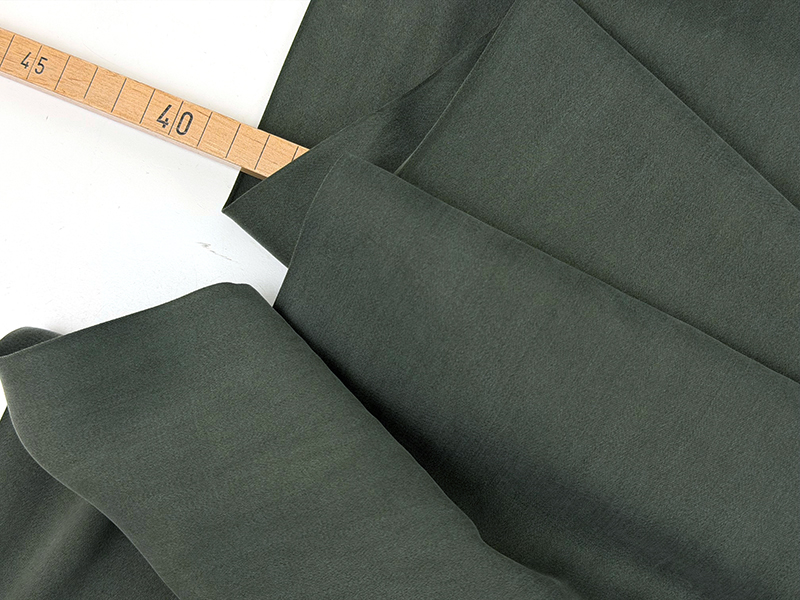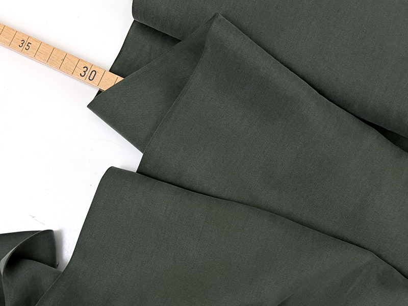 Sandwashed Lyocell Satin in wunderbar fließender Qualität. Das Material wurde sehr schonend über mehrere Stunden mit feinem Sand gewaschen und erhält daher seine seidig samtige Oberfläche. Durch die Satinwebung besitzt er gleichzeitig einen dezenten Schimmer. Der Stoff kann also sowohl festlich als auch klassisch und lässig! Der Farbton ist ein silbrig graues Dunkelgrün.