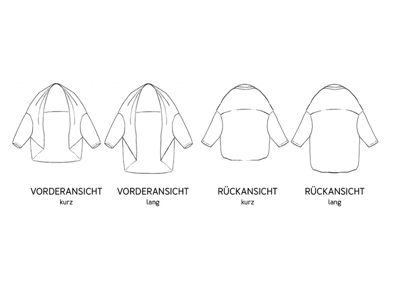 - Materialempfehlung: Es eignen sich ausschließlich weich fallende elastische Stoffe wie Sweat, French Terry, Romanit oder leichter Strick.