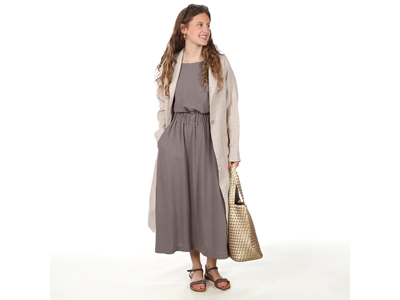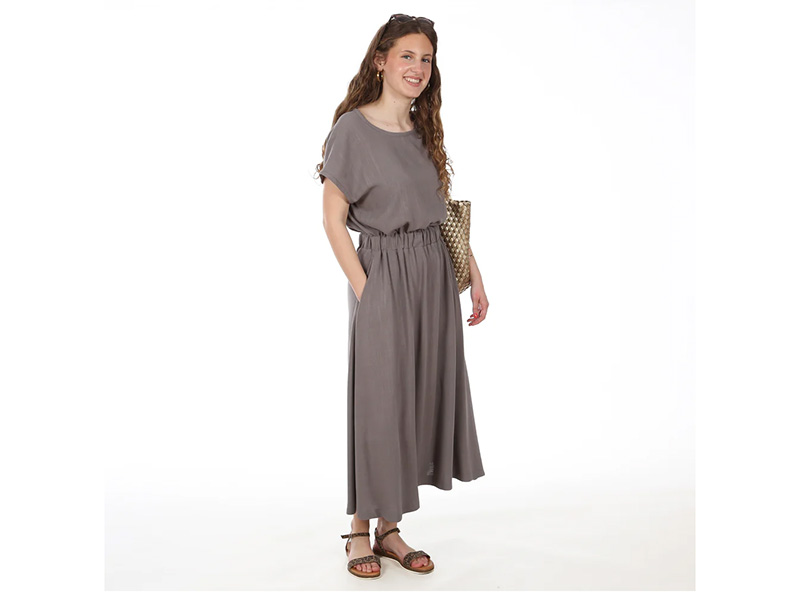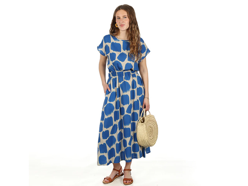 Frau Enna ist ein unkompliziertes Sommerkleid, das entspannt durch warme Tage begleitet. Der kniebedeckte, ausgestellte Rock schwingt locker mit und sorgt für eine feminine Silhouette. Das Oberteil fällt weich und leicht schoppend, ohne einzuengen – ideal für heiße Temperaturen. Dank Tunnel mit breitem Taillengummi wird das Kleid sanft auf Figur gebracht, ganz hen Reißverschluss oder Knöpfe. Einfach reinschlüpfen und wohlfühlen. Praktische, in der Seitennaht eingearbeitete Eingriffstaschen bieten Platz für Kleinigkeiten.