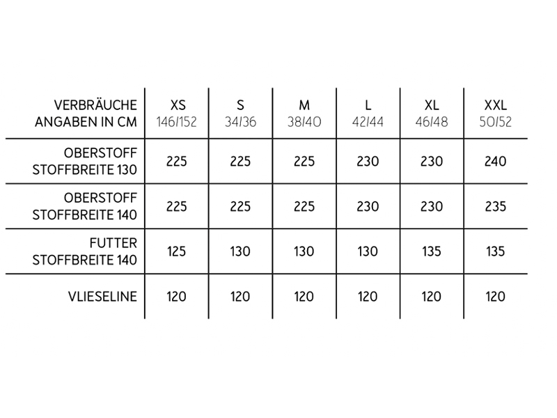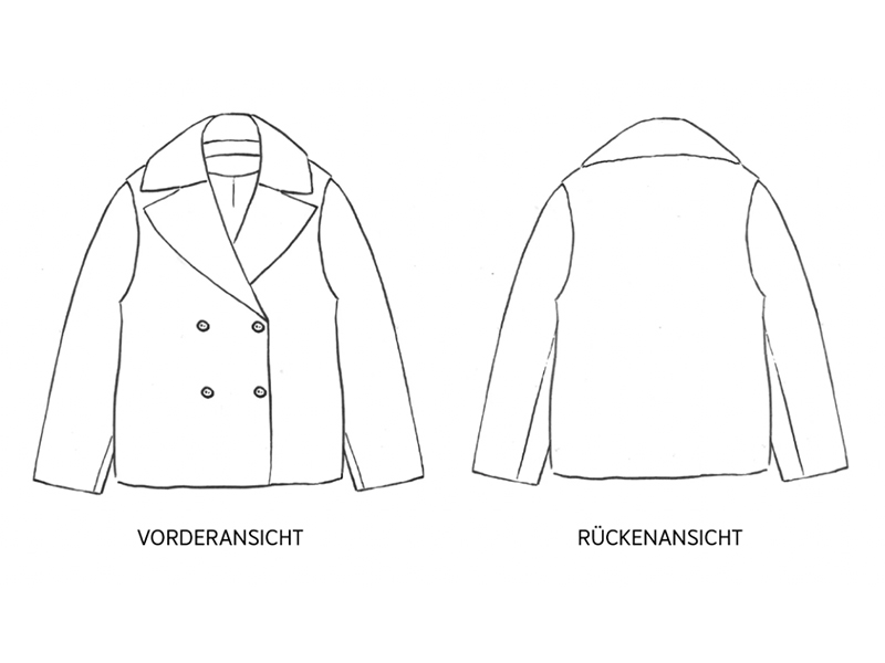 - Materialempfehlung: Es eignen sich mitteldicke Mantelstoffe wie Wolle, Walk oder Softshell, etc.
