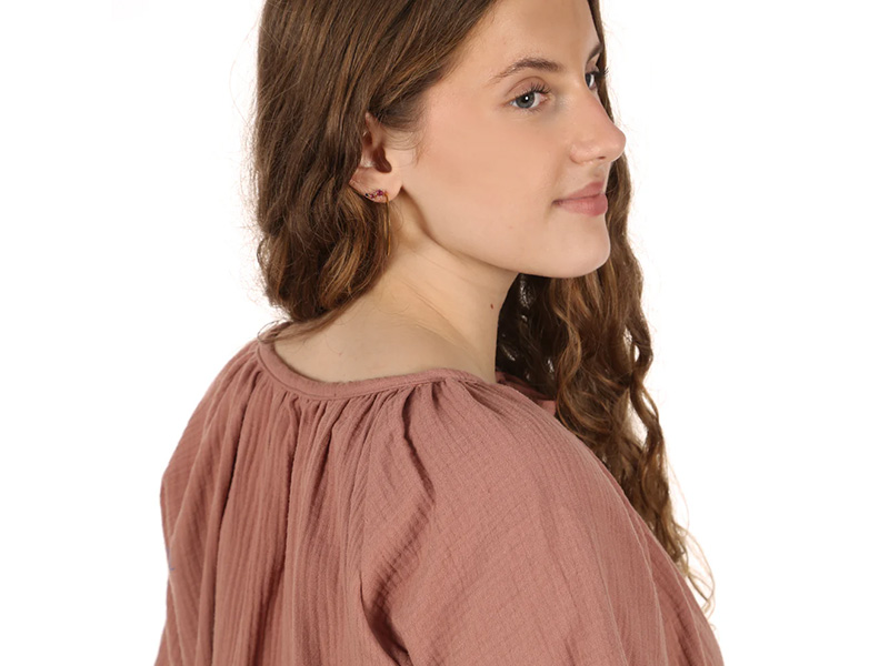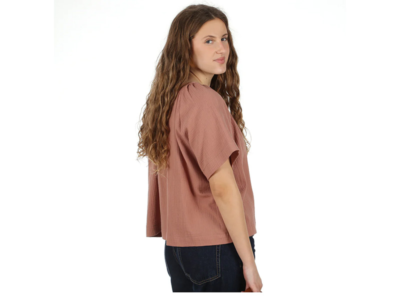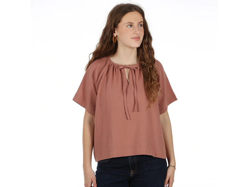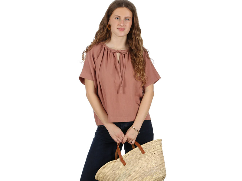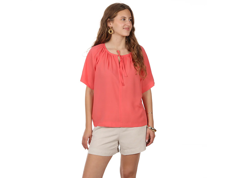 Frau NOOR ist eine feminine, kurz geschnittene Sommerbluse, die durch ihren fließenden Stoff und ihre luftige Passform überzeugt. Das leichte Material sorgt für ein angenehmes Tragegefühl und macht die Bluse ideal für warme Tage. Der runde Halsausschnitt wird durch feine Kräusel, einen dekorativen Schlitz in der vorderen Mitte und ein zartes Bindebändchen stilvoll in Szene gesetzt. Die weit geschnittenen Raglanärnel verleihen der Bluse eine entspannte Silhouette und unterstreichen den sommerlich-leichten Look.