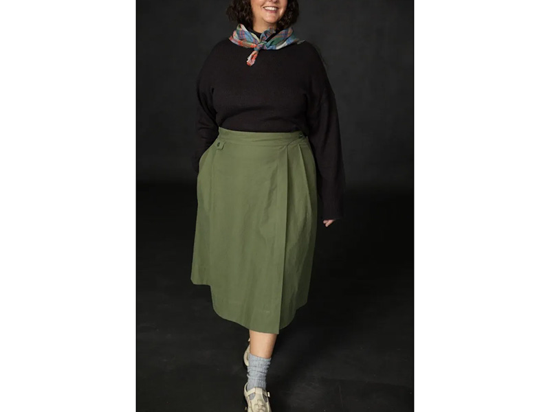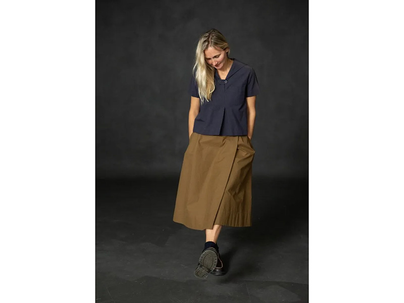 Der perfekte Rock fürs Bergsteigen UND für den Stadtbummel, den du in zwei Varianten nähen kannst. Entweder mit hohem Bund, Taschen und Knöpfen als schönes Detail oder mit schlichtem Bindegürtel.