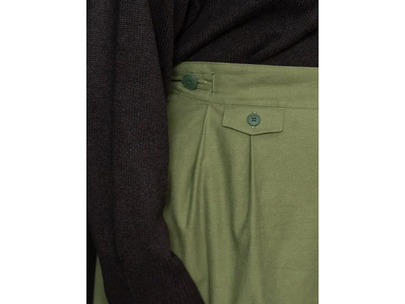 Version mit Bund: 4 Knöpfe ca. 2m, und 1 Knopf ca 1,5cm (für die Taschenklappe). Version mit Bindeband: 1 Knopf ca. 2cm.