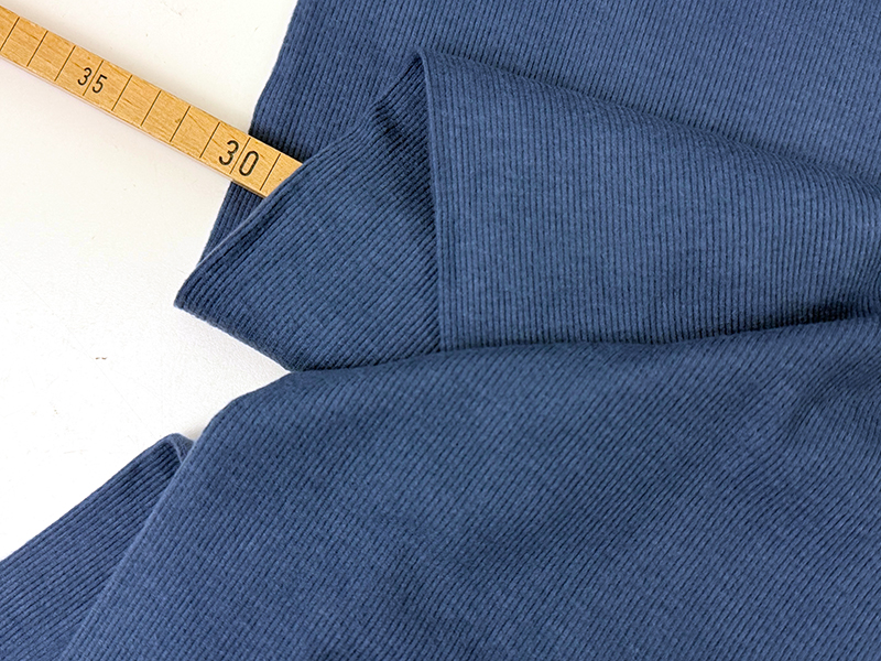 Samtig weicher Rippenjersey aus angerauter Viskose in einem schönem Denimblau. Das Material beidseitig gebürstet (wobei die Innenseite noch weicher ist als die andere) und mit 285gr/qm gleichzeitig etwas schwerer, so dass es sich um einen kuscheligen Winterjersey handelt. Durch die Rippe besitzt der Stoff eine schöne Struktur und rollt sich nicht an der Schnittkante.
