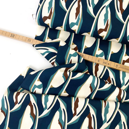 Viskose Stretch Abstrakt, Petrol Aqua Offweiß