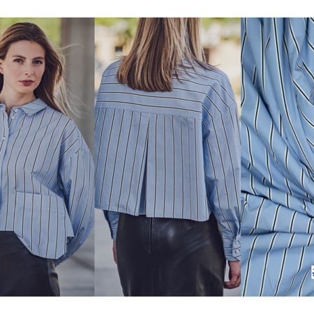 Reststück! 0,60m Woven Cotton Poplin Stripes, Hellblau / Schwarz / Weiß, Fibre Mood
